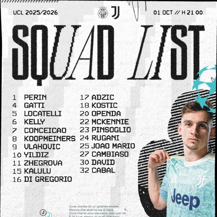 尤文公布欧冠客战黄潜21人名单:弗拉霍维奇、伊尔迪兹、戴维领衔